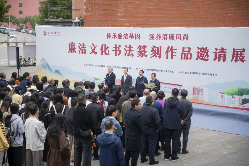 10月29日,“传承廉洁基因 涵养清廉风尚”廉洁文化书法篆刻邀请展开幕式在学校美术馆举行。党委书记黄涛、校长侯忠明、党委副书记徐晓宗出席开幕式。省纪委监委驻校...