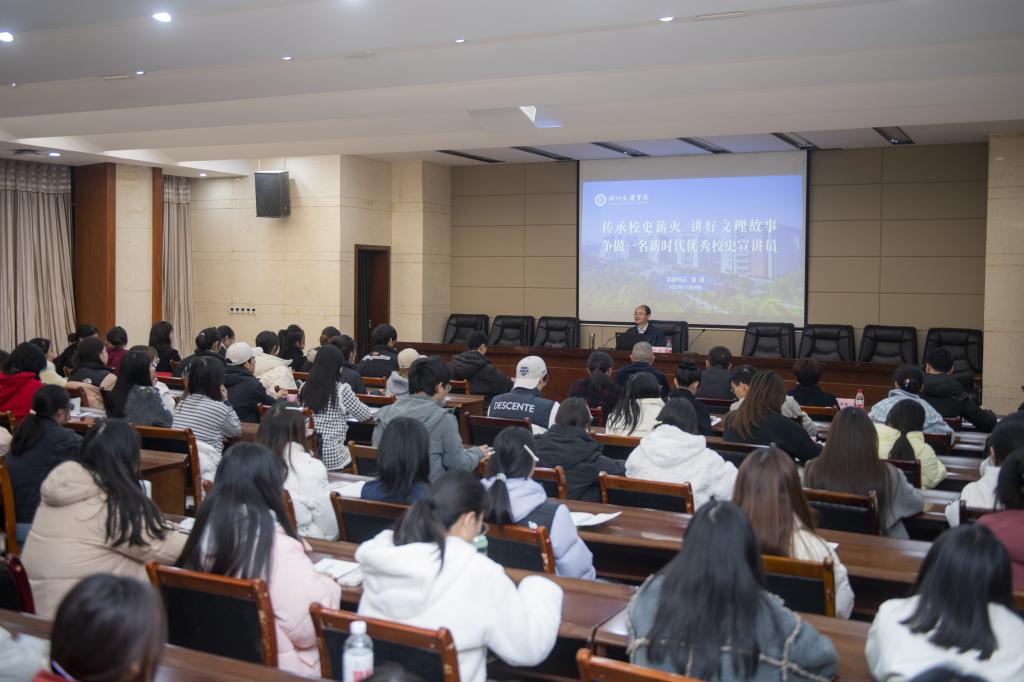 思政课上,黄涛围绕习近平总书记关于教育的重要论述和系列重要讲话精神,聚焦校史育人这一主题,详细阐述了校史的本质和校史的育人功能。他说,校史作为记录学校发展历程的珍贵历史文献,不仅是地方史的重要组成部分,更是中国共产党领导下的教育事业发展史的生动缩影。从革命年代高校师生的爱国呐喊到社会主义建设时期的科研攻坚,校史中蕴含的革命传统、爱国精神与奋斗意志,对塑造青年学生正确三观、涵养人文底蕴具有非常重要的作用,是学校立德树人的宝贵精神财富。