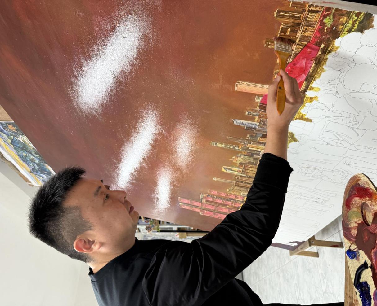 作品《低空经济》紧扣“低空经济”这一时代主题,将传统油画技法与现代科技题材相融合,体现出艺术家对当代社会发展的敏锐洞察与艺术表达能力。
