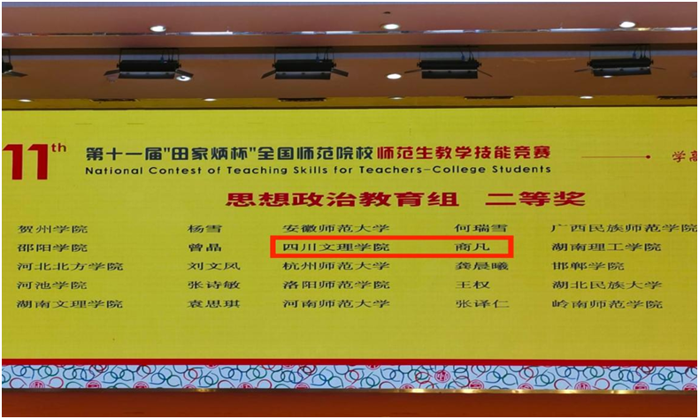 决赛采用“随机抽题+限时备课+无网络环境”的实战化考核模式。选手需在2小时内独立完成教学设计与课件制作,并随即进行即席讲演与模拟授课,全面考察其专业知识、教学技能与临场应变能力。在思想政治教育组中,全国仅45名选手入围决赛;商凡同学凭借扎实的专业功底与稳定的现场发挥,首次代表学院闯入全国总决赛并获二等奖,实现了该专业在此项赛事中的历史性突破。