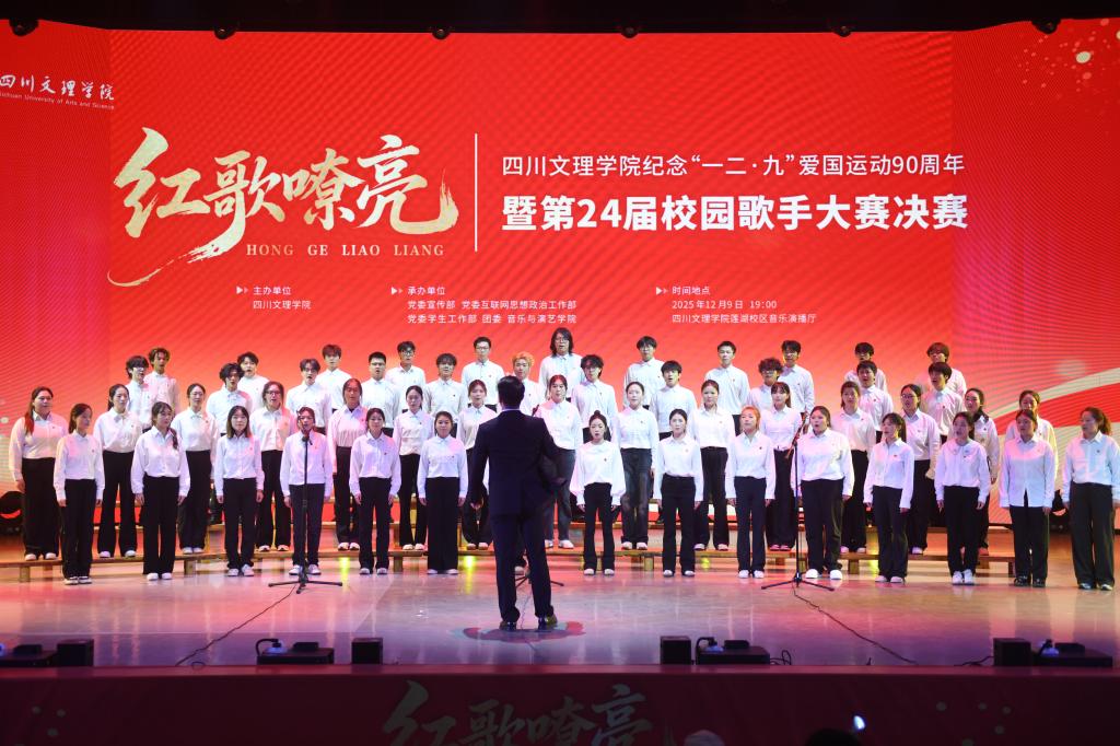 此次活动由四川文理学院主办,党委宣传部、党委互联网思想政治工作部、党委学生工作部、团委、音乐与演艺学院承办。自活动启动以来,得到全校广大青年的响应,经初赛、复赛,17位选手进入决赛,将“一二·九”运动的爱国精神融入青春血脉,用歌声里的赤诚与坚定,致敬先驱壮举,激励川文理青年在新时代的浪潮中奋勇前行,赓续红色血脉,听党话、跟党走,为祖国的繁荣富强贡献青春力量,生动展现了一堂“沉浸式”的音乐思政大课。