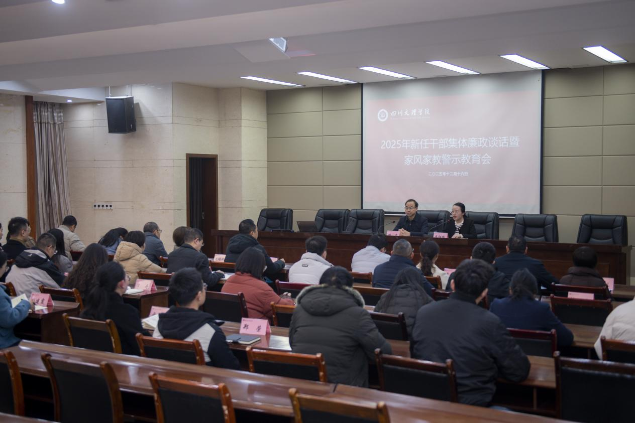 12月16日,学校党委召开新任干部集体廉政谈话暨家风家教警示教育会。省纪委监委驻校纪检监察组组长、校党委副书记、纪委书记帅胤出席会议并讲话。驻校纪检监察组副组长、校纪委副书记李红梅主持会议。