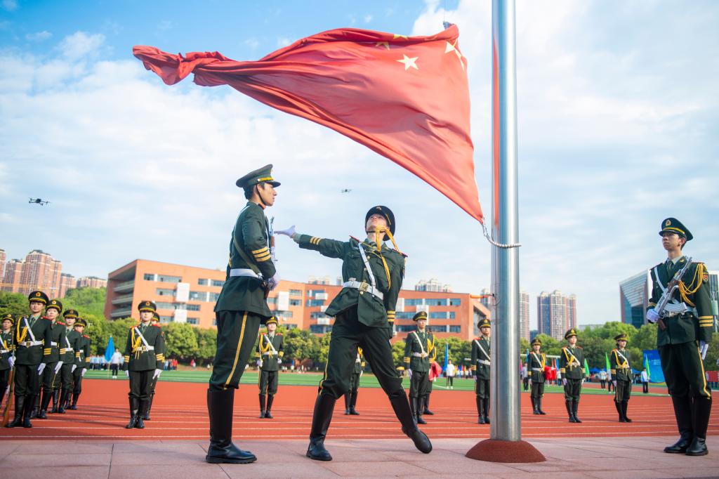 4月9日上午,运动会在激昂的旋律中拉开帷幕。入场式上,国旗、校旗方队率先引领,退役复学学生代表队步伐刚毅,裁判员、各机关分工会及二级学院师生方队精神抖擞、口号嘹亮,充分展现了文理师生昂扬奋进的风采。随后,举行了庄严的升国旗仪式。