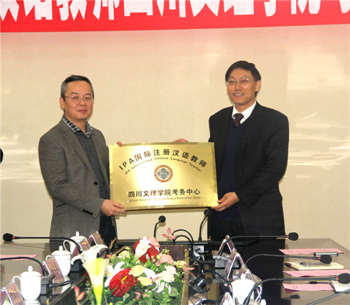 11月10日上午,IPA国际注册汉语教师四川文理学院考务中心授牌仪式在学校莲湖校区举行。四川省教育厅国际交流协会秘书长蔡力、校长王成端、党委副书记侯忠明、副校长李壮成及相关职能部门和二级学院负责人出席仪式。
