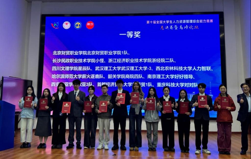 近年来,我校人力资源管理专业在各类学科竞赛中屡创佳绩,形成了“以赛促学、以赛促教”的良好生态。2023年,专业团队荣获第八届全国大学生人力资源管理综合能力竞赛区域赛二等奖、四川省教育厅人力资源管理技能竞赛一等奖;2024年,再获第九届竞赛区域赛二等奖、总决赛二等奖,并在第三届“一带一路”暨金砖国家技能发展与技术创新大赛数字人力资源管理技能赛项中获区域赛二等奖、总决赛三等奖。这些成绩的取得,体现了专业实践教学改革的持续深化与人才培养质量的稳步提升。