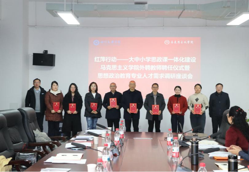 会上,举行了外聘教师聘任仪式。姜仕华、孙杰共同为王兴周、牟超、龙川江、覃友才、彭艳、刘洋、徐飘、王莉、贺凤琴等教师颁发马克思主义学院外聘教师聘书。