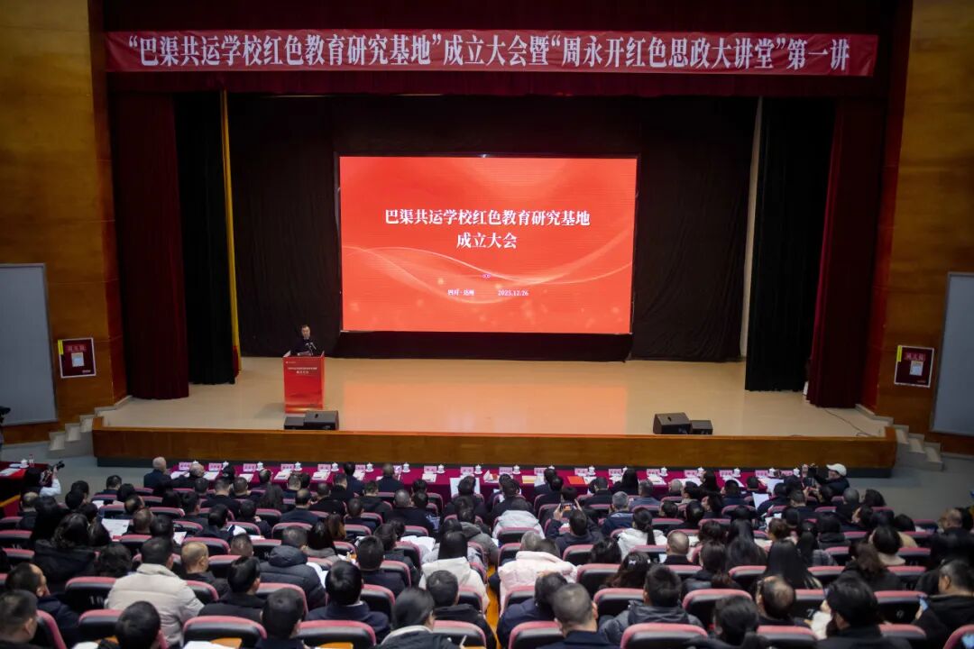 2025年12月26日上午,在纪念毛泽东同志诞辰132周年之际,四川文理学院艺术传媒大楼多功能厅庄重而热烈,“巴渠共运学校红色教育研究基地”成立大会暨“周永开红色思政大讲堂”第一讲在此隆重举行。本次活动由达州市委教育工委与四川文理学院联合主办,标志着川东北地区红色教育研究与实践迈向体系化、协同化、品牌化的新阶段。市级相关部门,巴中市、广安市委教育工委,原“巴渠共运友好学校联谊会”成员单位,大中小学思政课一...