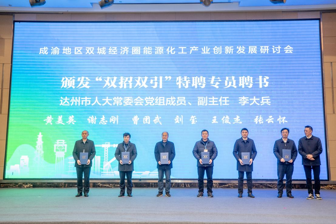 在12月17日上午的成渝地区双城经济圈能源化工产业创新发展研讨会上,达州市经信局介绍了达州能源化工产业发展基本情况,四川大学化学工程学院吉旭教授围绕达州市能源化工产业高质量发展作了专题报告,重庆大学、四川轻化工大学、四川大学3所高校进行了技术成果推介,四川正达凯有限公司、广东美联新材料公司、瓮福达州化工有限公司等20家单位发布了技术需求,5所高校与在达6家单位签署合作协议和备忘录,为12名专家代表颁发了达州市“招才引智、招商引资”(“双招双引”)特聘专员证书。