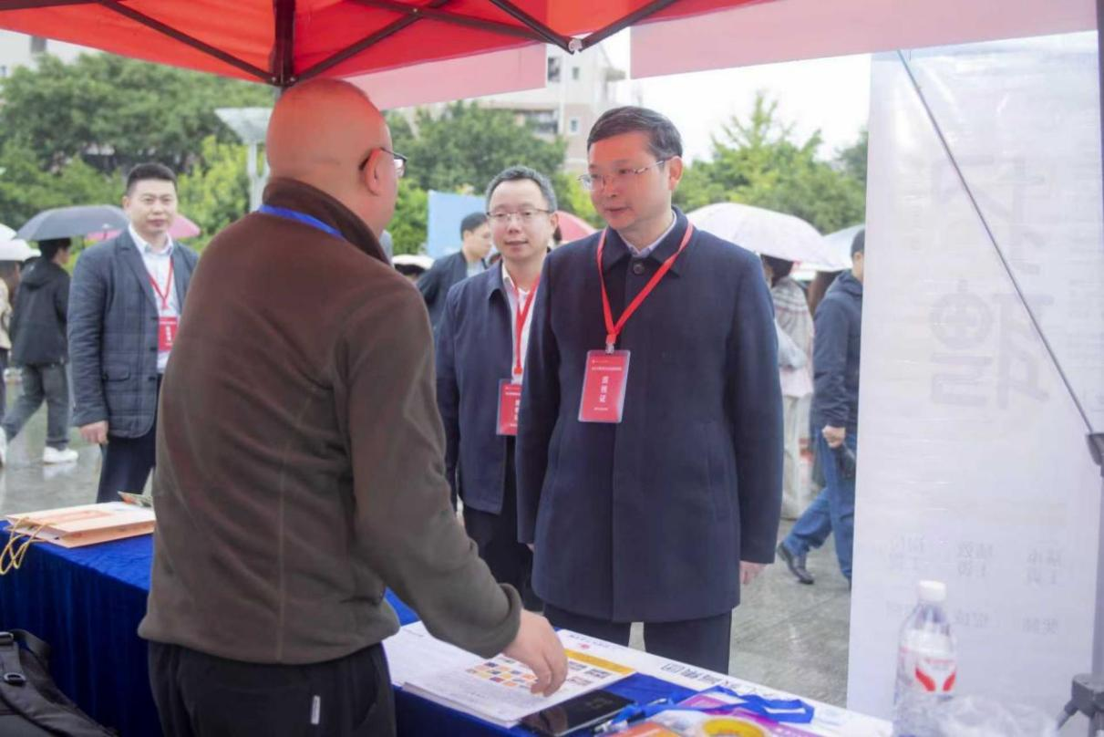 侯忠明一行走访了各个招聘专区,与多家用人单位进行面对面交流,对大家的到来表达诚挚的感谢和热烈欢迎。他表示,学校认真落实就业工作“一把手”工程,从学科专业建设、人才教育培养、求职就业应聘等方面全方位助力学生成长成才。学校毕业生具有扎实的专业基础知识、较强的实践动手能力、良好的敬业精神和创新能力。希望以此次双选会为契机在科技创新、人才培养、文化传承、就业实习等方面与广大用人单位建立长期、深度的合作关系。