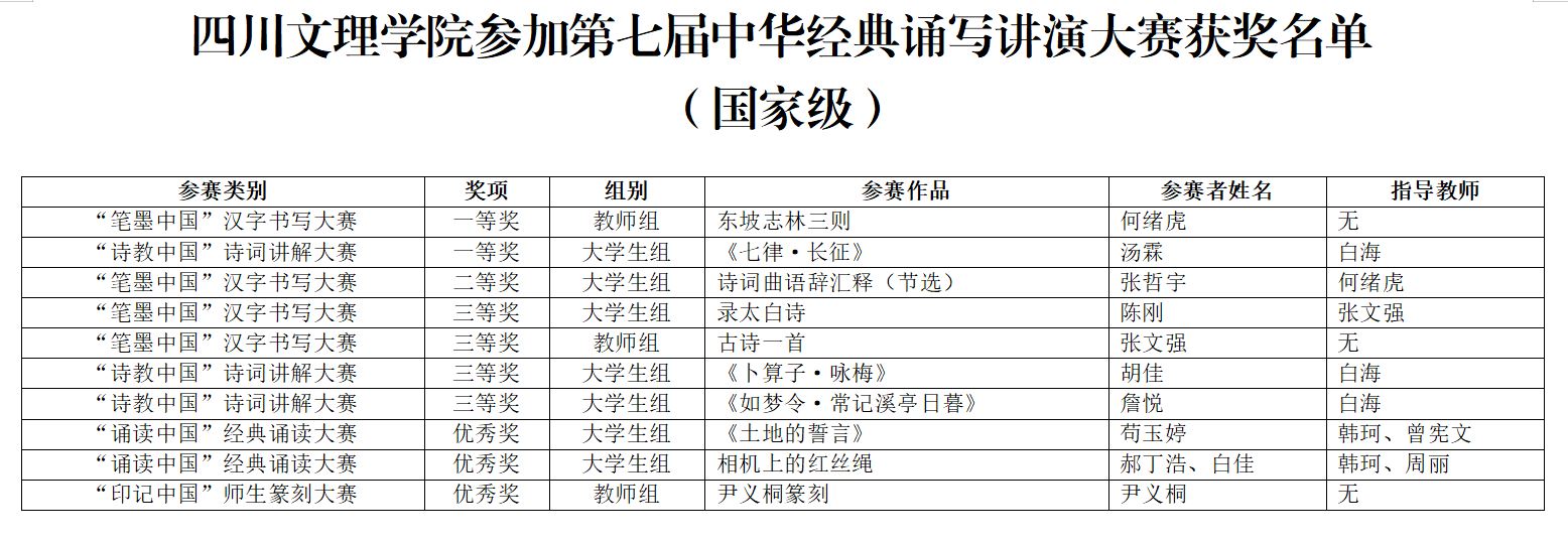 近日,第七届中华经典诵写讲演大赛国家级获奖名单正式公布。我校师生表现优异,在多个赛项中斩获佳绩,共荣获国家级一等奖2项、二等奖1项、三等奖4项及优秀奖3项,充分展现了学校在传承中华优秀语言文化、提升学生语言文字素养方面的扎实成效。