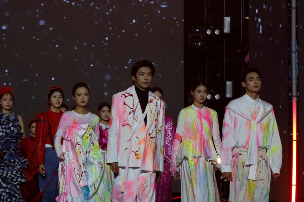12月31日晚,“潮涌达州 爱满通川”2026跨年晚会在达州市中心广场隆重举行。在众多精彩节目中,我校美术学院服装与服饰设计专业师生带来的6分钟服装走秀成为晚会亮点,千禧模特造型社的30位学生倾情演绎30套融合达州地域文化与非遗剪纸的原创服装作品,为观众呈现了一场视觉与文化交融的时尚盛宴。