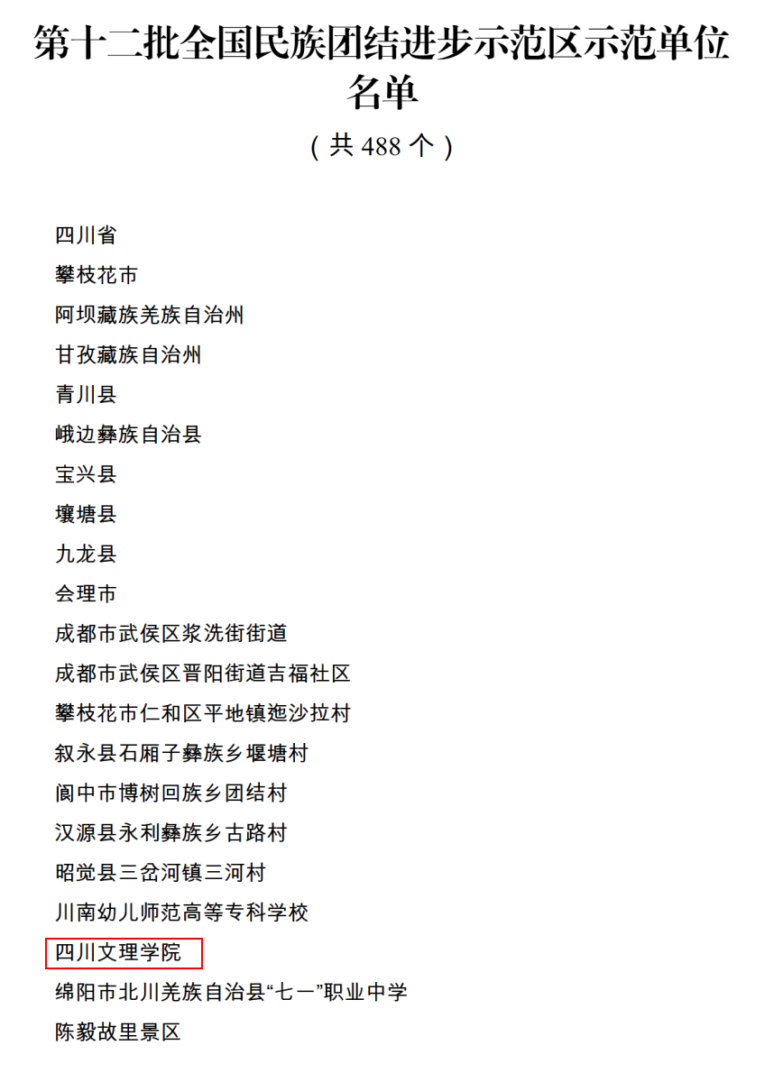 近日,国家民委发布《国家民委关于命名第十二批全国民族团结进步示范区示范单位的决定》,我校获评第十二批全国民族团结进步示范区示范单位。