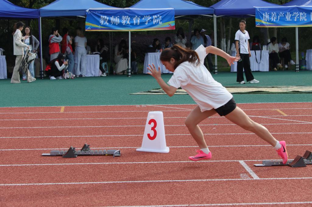 本届运动会共有20支代表队、1000余名运动员参与角逐,运动员们在短跑、长跑、跳高、跳远、接力等项目上展开了激烈竞争。经过奋勇拼搏,多项校纪录被刷新:体育学院张海川以22.67秒创男子200米新纪录;康养产业学院、医学院庞尔鹏以54.77秒刷新男子400米纪录;政法学院、知识产权学院刘鑫以4分31秒刷新男子1500米纪录,并以16分42秒打破男子5000米纪录;外国语学院陈宇欣以30.25秒改写女子200米纪录,并在女子三级跳远中以9.25米的成绩创下新标杆。这些成绩生动诠释了不懈拼搏、超越自我的体育精神。