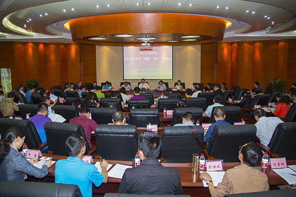 办公室、教务处、评估处、人事处、学生处、科技处、信息化建设与服务中心、图书馆等部门负责人,教学督导专家,各二级学院教师代表近百人参加会议。
