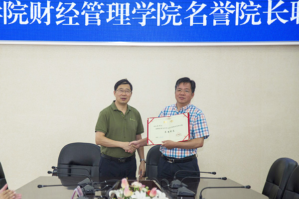 6月14日,中国社会科学院经济研究所研究员、博士生导师胡家勇受聘我校财经管理学院名誉院长仪式在莲湖校区举行。党委书记王成端教授出席并讲话,校长刁永锋教授颁发聘书,副校长李壮成教授主持。