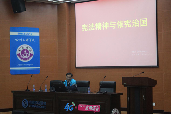 11月3日晚,西华师范大学法学院党委书记刘永红应邀来校作“宪法精神与依法治国”的学术讲座,政法学院院长陈仲教授主持。