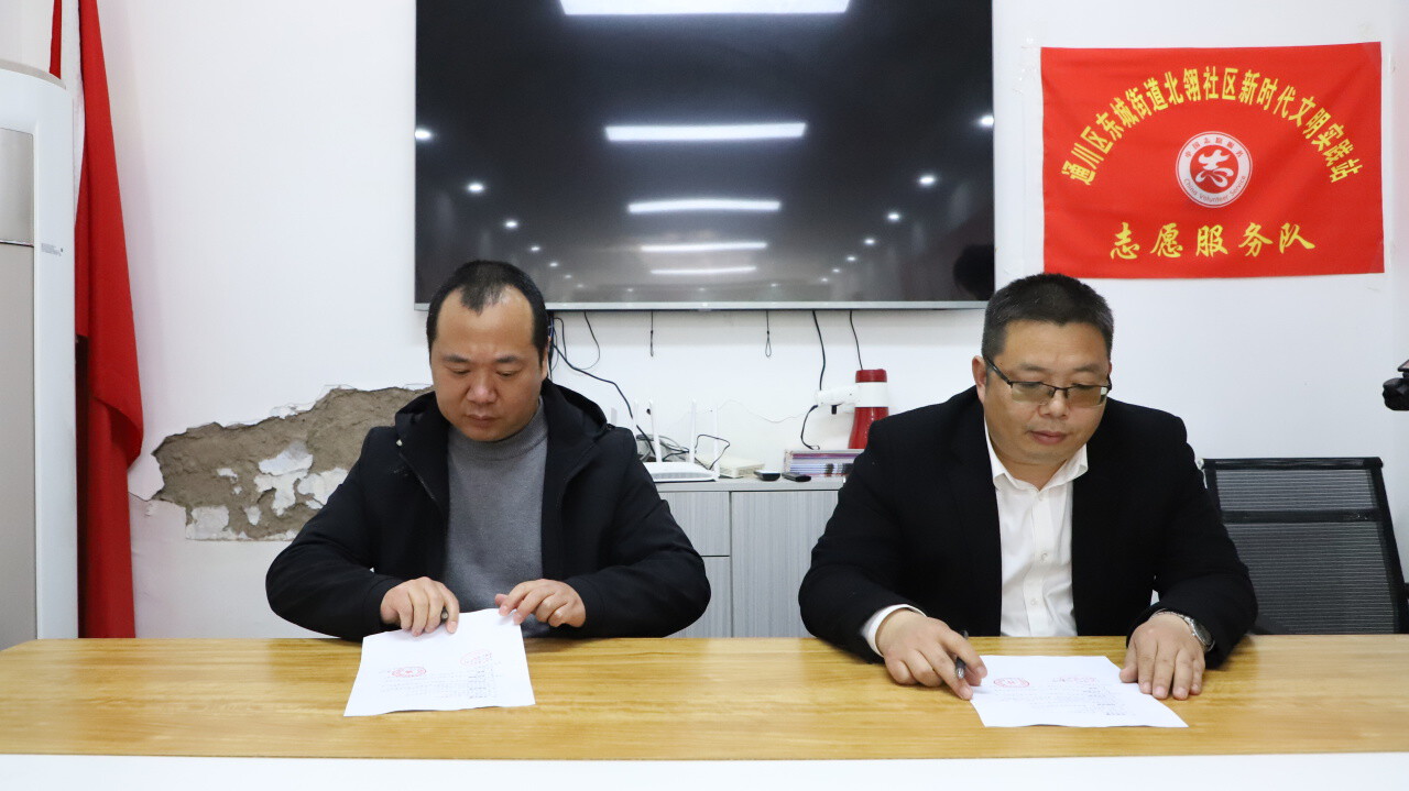 上午9时30分,仪式在温馨有序的氛围中拉开帷幕。北翎社区党委书记李帆、四川文理学院外国语学院党委副书记董怀军及大学生志愿者代表分别致辞,表达了对实践基地共建的美好祝愿与殷切期待。随后,双方代表签订《校社共建结对协议》,明确共建宗旨、合作内容及双方职责,并共同为实践基地揭牌。