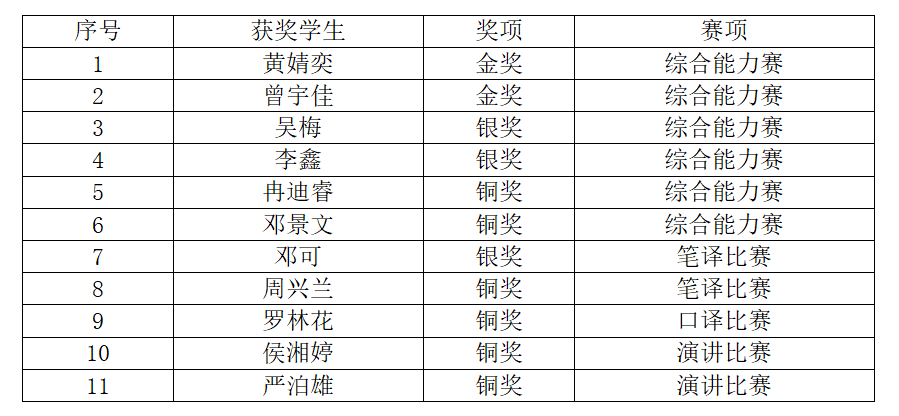 此次获奖充分展现了我校学子的外语应用能力与国际视野,是学校践行“以赛促学、以赛促教”理念的生动体现。大赛不仅是检验“三进”教学成效、培养拔尖创新外语人才的重要平台,更是推动习近平新时代中国特色社会主义思想有机融入外语教育实践的关键载体。学院将持续为学生搭建更多学科竞赛平台,助力培养具备中国情怀与国际竞争力的优秀人才。