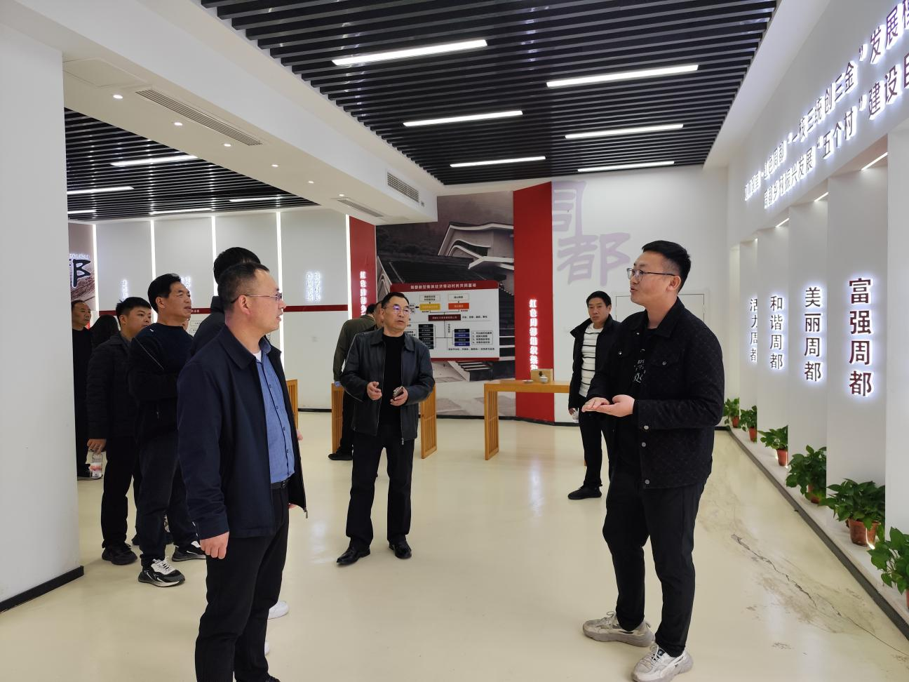 汲取先进经验,助力乡村振兴。在乡村振兴示范村——周都村。大家参观了周都村党建展廊暨全过程人民民主巴渝实践站民主走廊,深入了解以周都村全过程人民民主巴渝实践站为主阵地的融合矩阵。周都村有效联动民主走廊、村民茶社、积分超市、综治中心、新时代文明实践站、周都红公司等6大民主阵地,将红色文化与民主实践深度融合,通过数字赋能和创新机制,提升了群众参与度和基层治理效能,为四川文理学院三个定点帮扶村提供了可借鉴的实践经验。