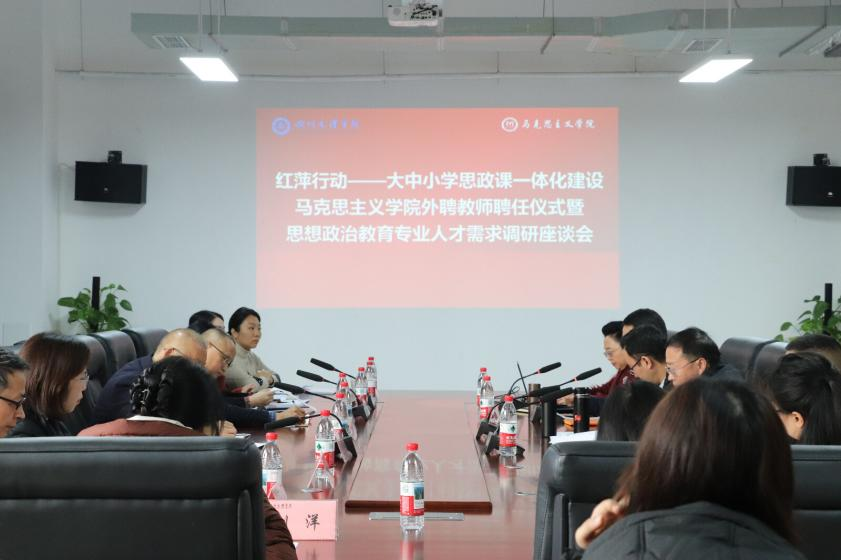 为深入推进大中小学思政课一体化建设,加强高校与基础教育阶段的协同联动,优化思想政治教育专业人才培养模式,12月10日下午,马克思主义学院举办“红萍行动——大中小学思政课一体化建设”暨思想政治教育专业人才培养需求调研座谈会。